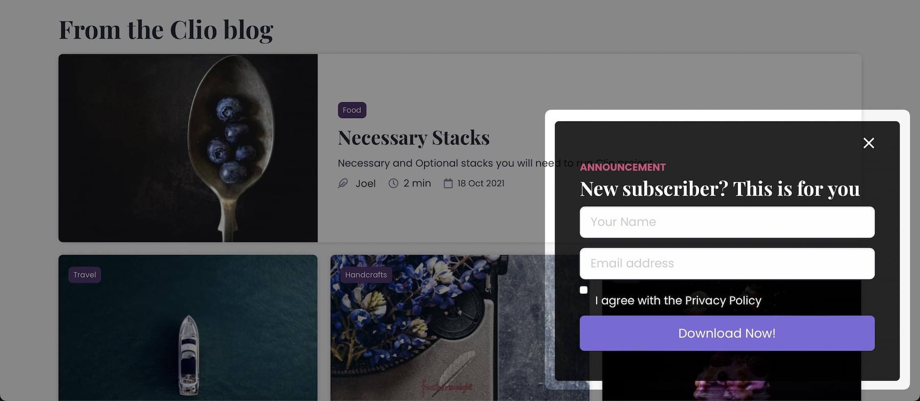 Assign an image to each of your blog category. They will look great on your blog page! You can choose to display only the title of the category or remove this section completly.